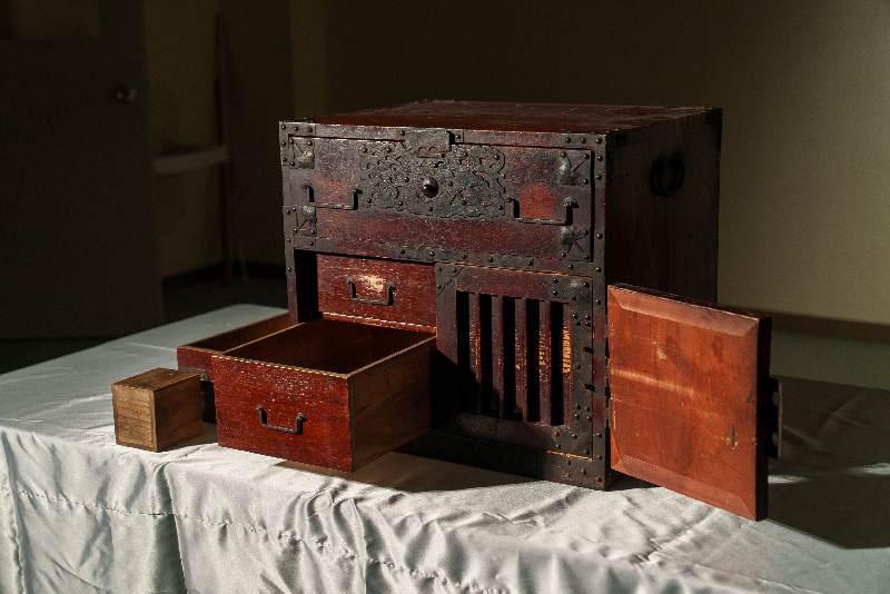 船箪笥(ふなだんす)は今の手提げ金庫の役割をはたすものです。船の運航に必要なお金や帳簿(ちょうぼ)、印鑑(いんかん)、筆記具などを入れていました。